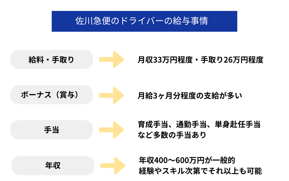 ここでは、佐川急便のドライバーの給与について、基本的な給与体系から諸手当やボーナスまで詳しく解説します。