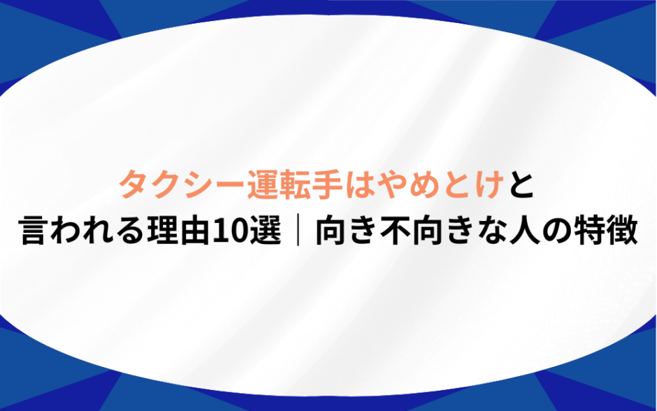 「タクシー運転手はやめとけ」とインターネット上で言われることがあります。確かに、タクシー運転手にはデメリットや大変な面もありますが、一概にやめておいた方が良いとは言えません。本記事では、タクシー運転手を辞めた方が良いと言われる理由を10個挙げつつ、向き不向きな人の特徴についても解説します。タクシー運転手への就職・転職を検討している方は、ぜひ参考にしてみてください。