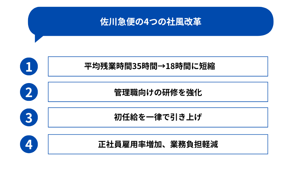 佐川急便は近年、「ブラック企業」のレッテルを返上すべく、全社を挙げて働き方改革に取り組んでいます。ここではその具体的施策を4つの側面から検証します。