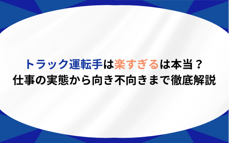 「トラック運転手は楽すぎる」というフレーズを耳にしたことがある人も多いのではないでしょうか。しかし、実際のトラック運転手の仕事内容や働き方を知らない人にとっては、真偽のほどが掴みにくいものです。