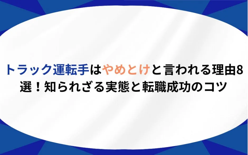 - トラック運転手が「底辺」「やめとけ」と言われる8つの理由