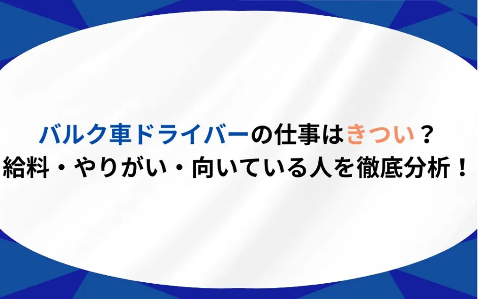 バルク車ドライバーの仕事は、長時間の運転や不規則な勤務、肉体的・精神的な負担など、きつい側面があると言われています。しかし、その一方で高い給与水準や社会的意義、キャリアアップの可能性など、魅力的な面も多くあります。この記事では、バルク車ドライバーの仕事の実態を詳しく解説し、そのきつさと魅力の両面を探っていきます。
