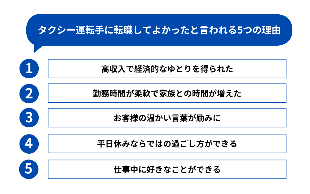 タクシー運転手への転職を考えている人へ朗報です。実際に転職した先輩ドライバーたちの声を集めると、高収入、柔軟な働き方、やりがいなど、嬉しいメリットがたくさんあることがわかりました。この記事では、転職して人生が好転したドライバーの体験談から、タクシー会社選びの極意、転職選考の攻略法まで、転職成功のヒントが満載です。まずはその一部をご紹介しましょう。