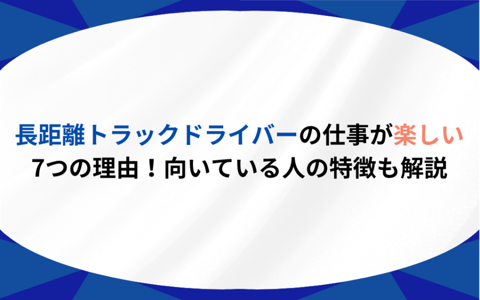 - 長距離トラックドライバーの仕事の7つの魅力