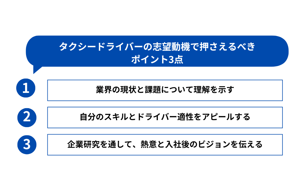 - タクシードライバーの志望動機で押さえるべき3つのポイント