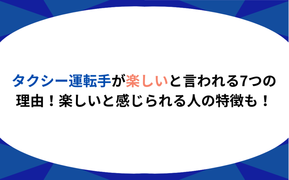 タクシー運転手が楽しいと言われる7つの理由