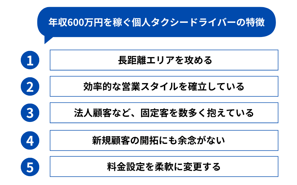 ・年収600万円以上を稼ぐ個人タクシードライバーの特徴